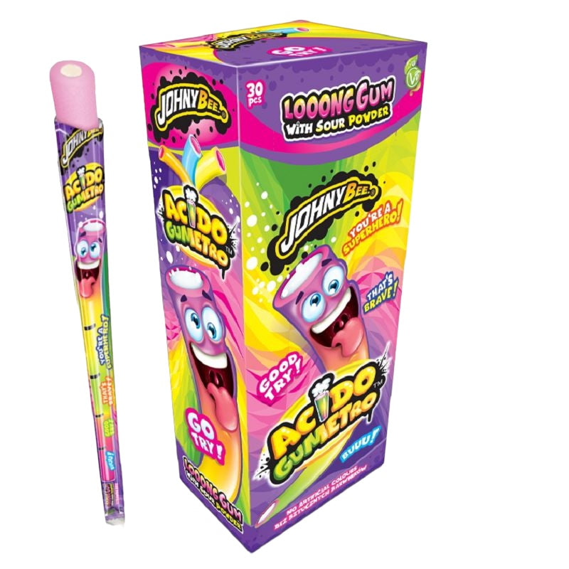 Ce bonbon n'est pas une pâte à avaler mais un chewing gum qui pique à la fraise, à la pomme, à la cerise ou au cola ! En effet, mâcher cette gomme fruitée laissera échapper une poudre acide qui électrisera vos glandes gustatives !