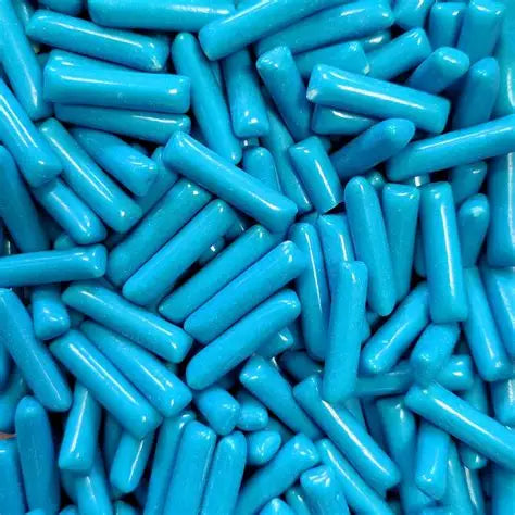 Sucre, sirop de glusose, graisse de palme, 5% jus de fruits à base de concentrés (pomme, pêche, citron, fraise, framboise), gélatine*, stablilisant : gomme arabique ; amidon modifié, dextrose, acidifiants : acide lactique, acide citrique; arôme, émulsifiant : lécithines; colorants : bleu brillant FCF; agents d'enrobage : cire de carnauba, shellac, cire d'abeille blanche et jaune. *gélatine bovine.
