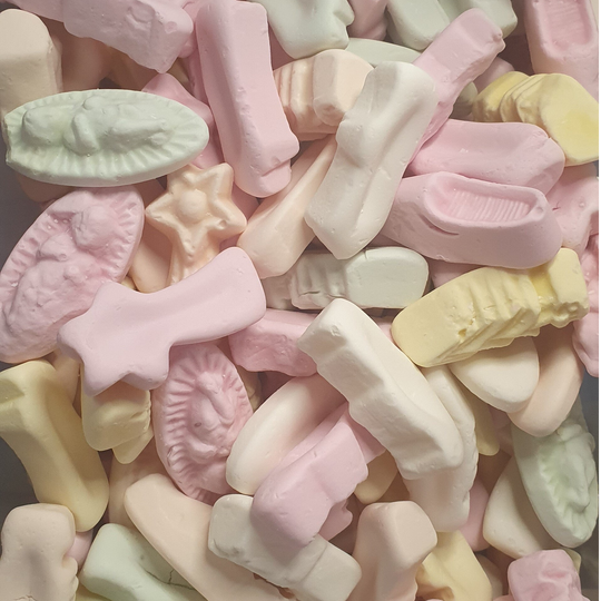 Ingrédients : sucre, sirop de glucose, gélifiant : gélatine. acidifiant : acide citrique, arômes naturels, colorants : complexe cuivrique de chlorophyllines, rouge de betterave.