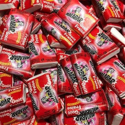 Sucre, Gomme base, Sirop de glucose, Dextrose, Acidifiant (Acide citrique), Arôme, Humectant (E422), Colorants (E120, E161b), Antioxydant (E321), Emulsifiant (Lécithine de tournesol).