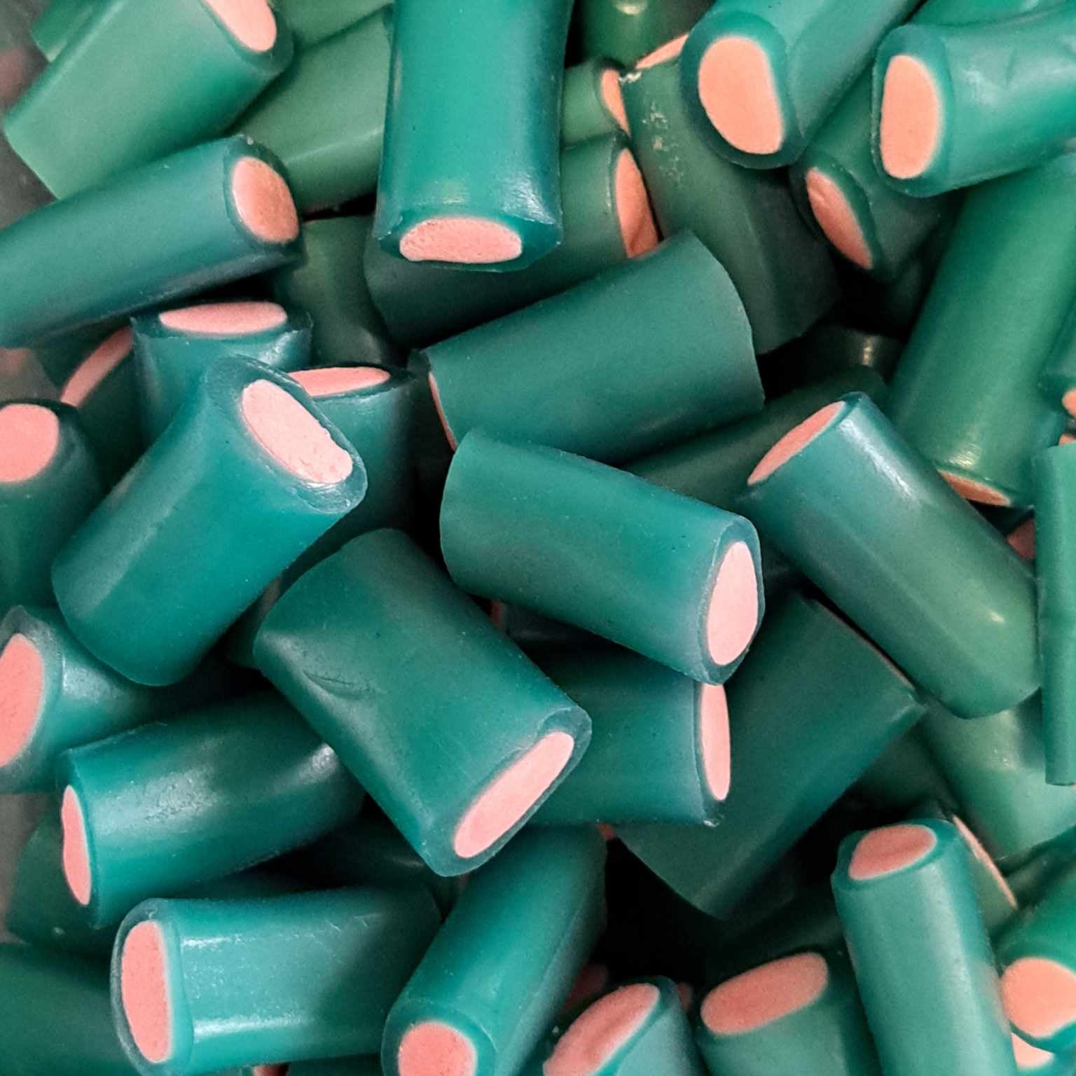 Ingrédients : sirop de glucose-fructose, sucre, farine de blé, amidon, huile et graisse végétale (palme), eau, acidifiant (e330), amidon de pomme de terre, sirop de sorbitol, gélatine de boeuf halal, arômes, antioxydant (E331iii), émulsifiant (E471), colorants (E171, E133, E129), agents d'enrobage, huile végétale (palme et noix de coco).