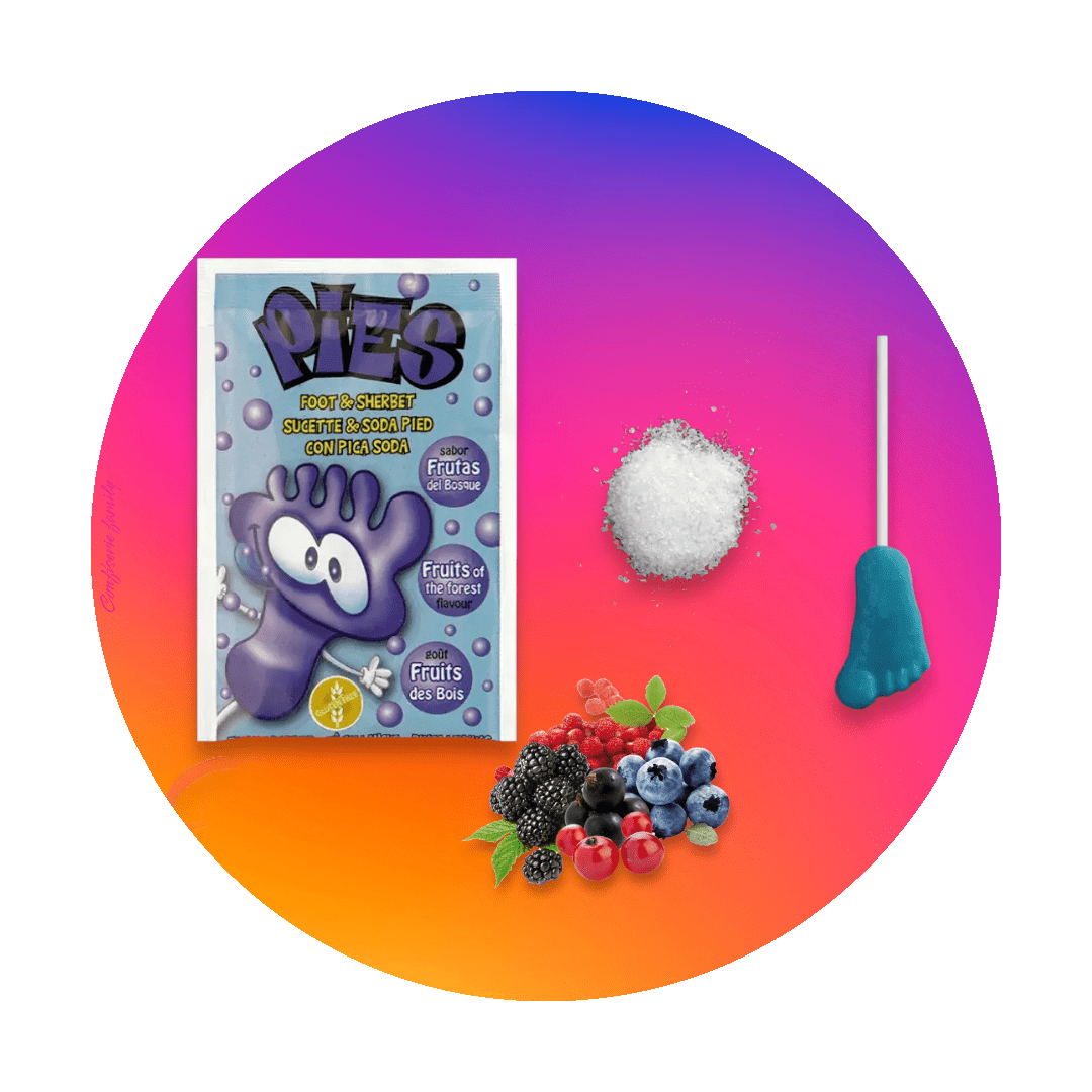 Ingrédients : sucre, sirop de glucose, dextrose, acide citrique, arômes et colorant E133.