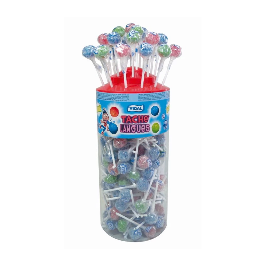 - Sucre, sirop de glucose, acidifiant : acide citrique, acide malique, arômes, colorants : E100, E129*, E133.